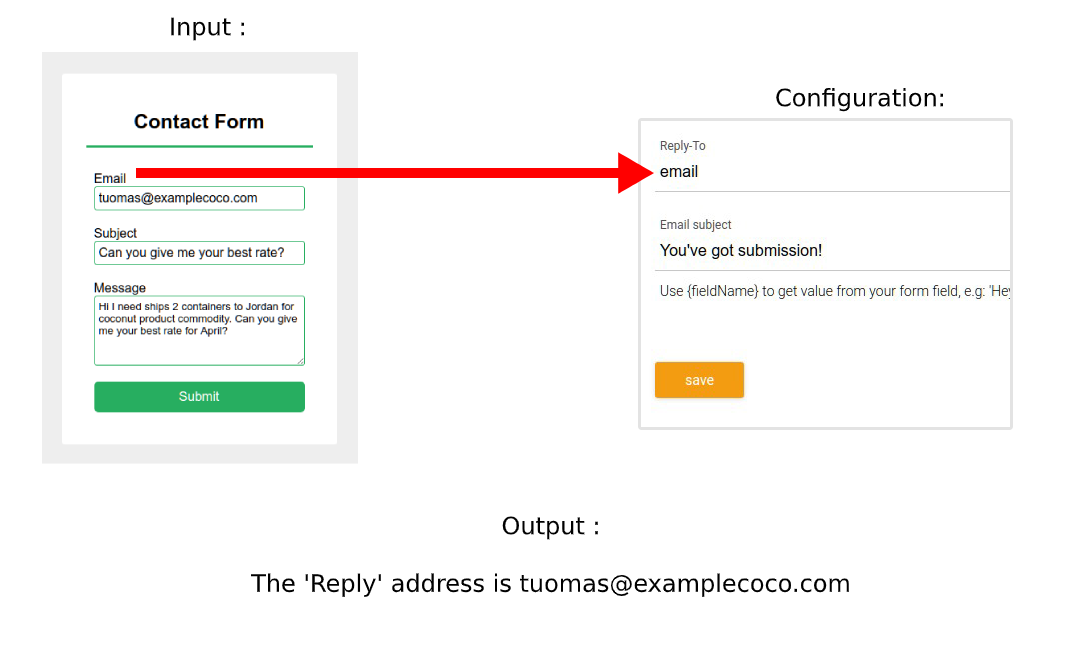 - Enter field name that contain email address you want send the reply to on "Reply-To field".